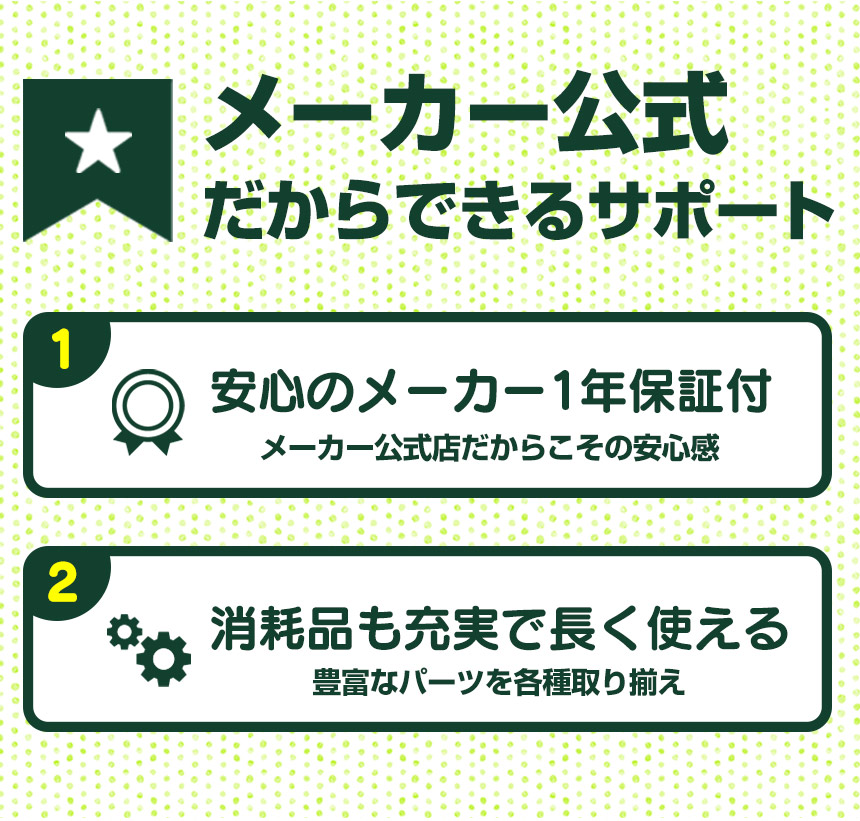 | 保証期間 | 1年 ※オークションサイトやフリマサイトなど、 当社以外の第三者からご購入いただいた商品は保証対象外でございます。 あらかじめご了承ください。 |
