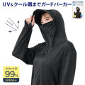 | これ1枚で顔から手の甲まですっぽり日よけ対策 つば幅約9cmのフード付きで日差しをガード! ファスナーを閉じると鼻まですっぽり包み込み、顔・首元から上半身までしっかり紫外線から守ります。また袖は親指が出せる指出し穴付きデザインで、気になる手の甲もガード! お尻まですっぽりのロングタイプでゆったり着用できます。 |