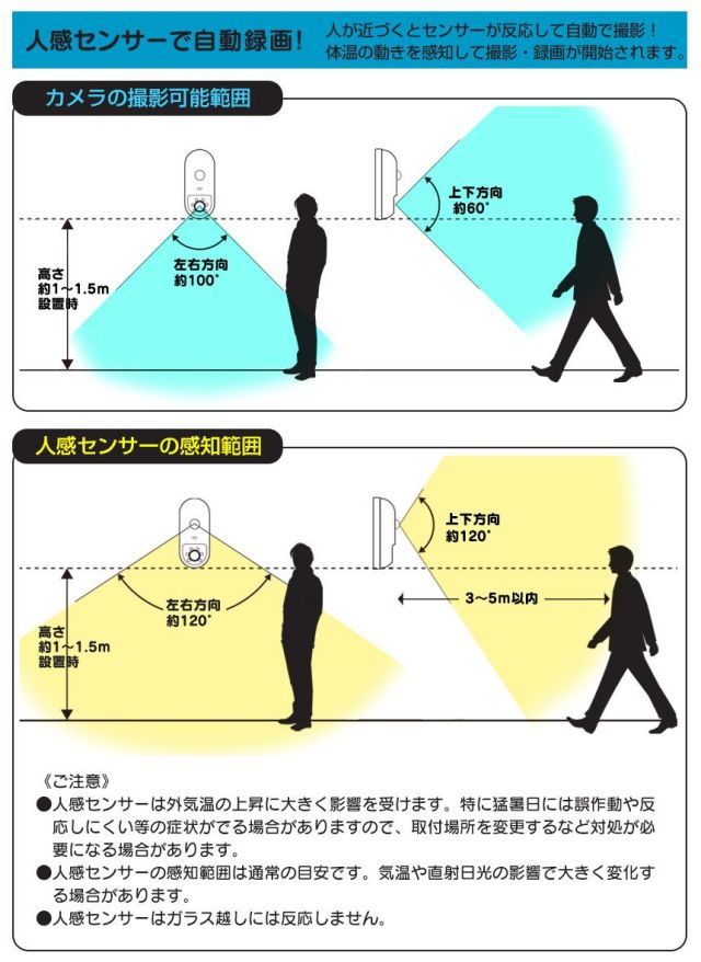 上下方向120度、左右方向120度、感知距離5mまで。 |