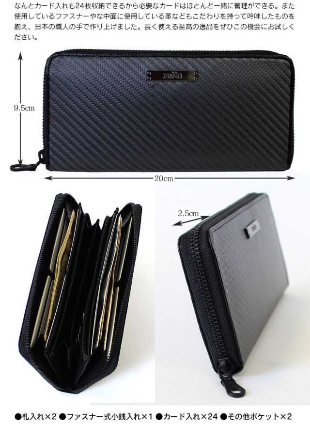 ■商品名:FRUHリアルカーボンラウンドジップウォレット GL026