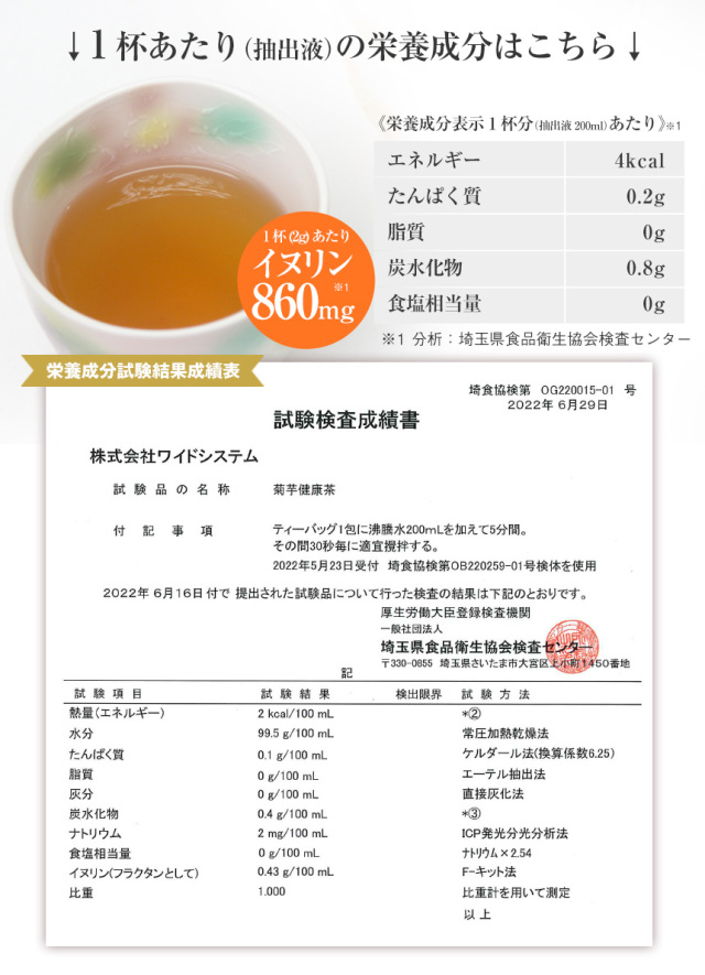 ・機能性関与成分「イヌリン」100%mg(1袋2gあたり(抽出後))