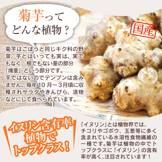 ・栽培期間中、農薬不使用栽培の国産菊芋を100%使用しています。