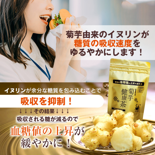 ・菊芋に含まれる水溶性食物繊維イヌリンにより、「食後の血糖値の上昇を抑える」機能があることが報告されています。