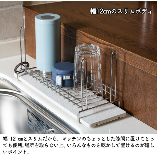 水筒やペットボトルの様な長物をしっかり水切りしたい時からフライパンやまな板などの一時置きに重宝します!
