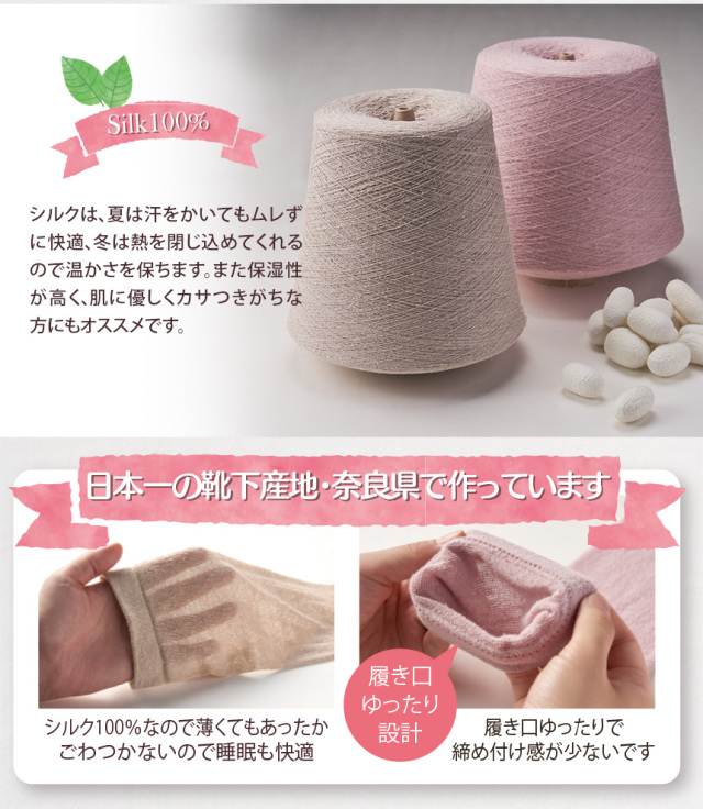 ・シルクは吸放湿性に優れた繊維です。そのため夏は汗をしっかり吸収して外へ放出し、冬は熱を閉じ込めてくれるため、むれずに快適な温かさを保ちます。