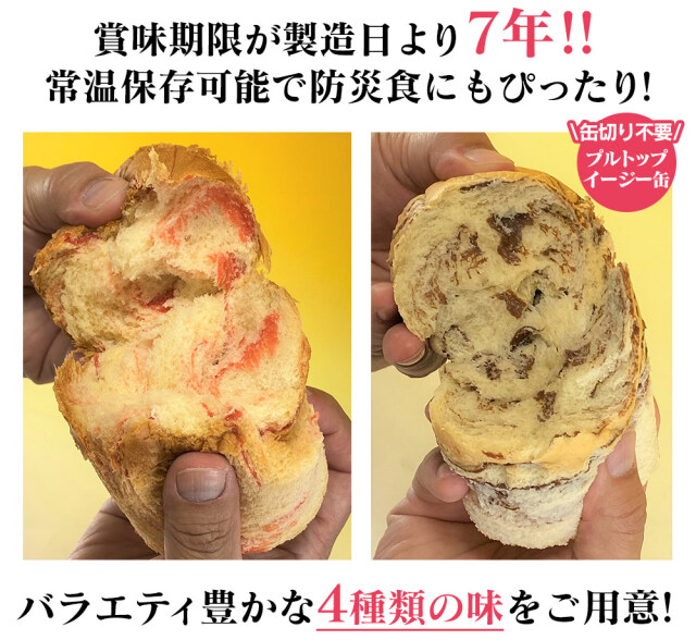 缶詰パンミルク×3缶、缶詰パンチョコレート×3缶、缶詰パンメープル×3缶、缶詰パンいちご×3缶、合計12缶セット |