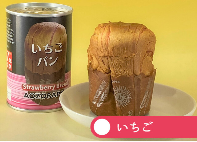 【缶詰バンいちご】小麦粉(国内製造)、いちごペースト(砂糖混合異性化液糖、植物油脂、水あめ、その他)、砂糖、卵、マーガリン、パン酵母、ショートニング、ぶどう糖、麦芽糖、食塩/加工でん粉、pH調整剤、乳化剤、乳酸、グリシン、着色料(紅麹、クチナシ、アナトー)、増粘多糖類、香料、酸化防止剤(V.E)、(一部に小麦・卵・乳成分・大豆を含む)