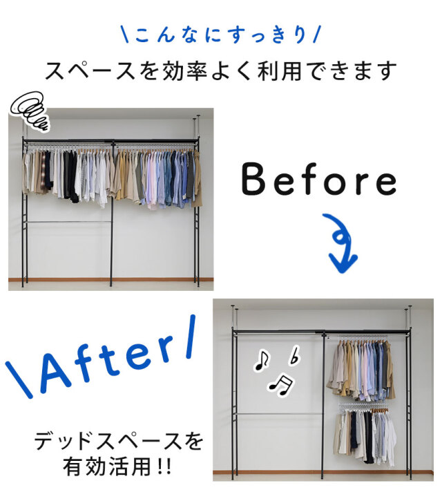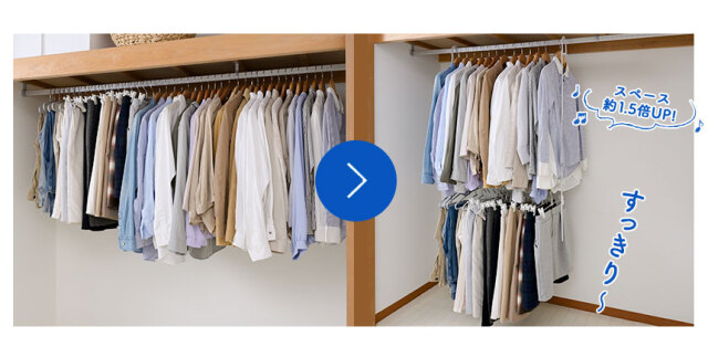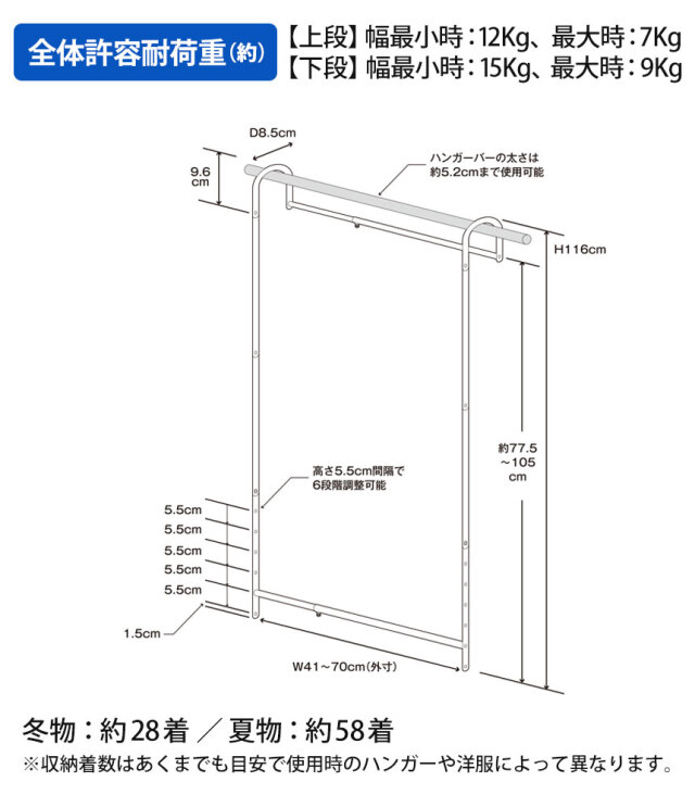 冬物:28着/夏物:58着※収納着数はあくまでも目安で使用時のハンガーや洋服によって異なります。 |
