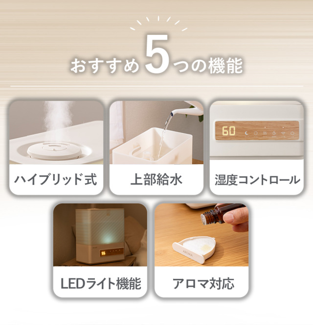 上部給水式、LEDライト、アロマ対応 |