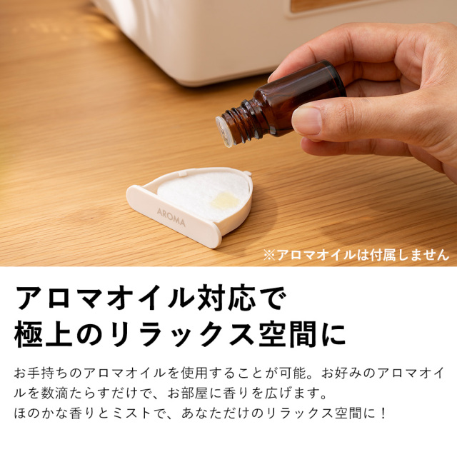 ※お使いの端末によって実際の商品と色が若干異なる場合がございます。 ※加湿量は周囲環境や温度、水温により変化します。 ※アロマオイルは付属しません。 |