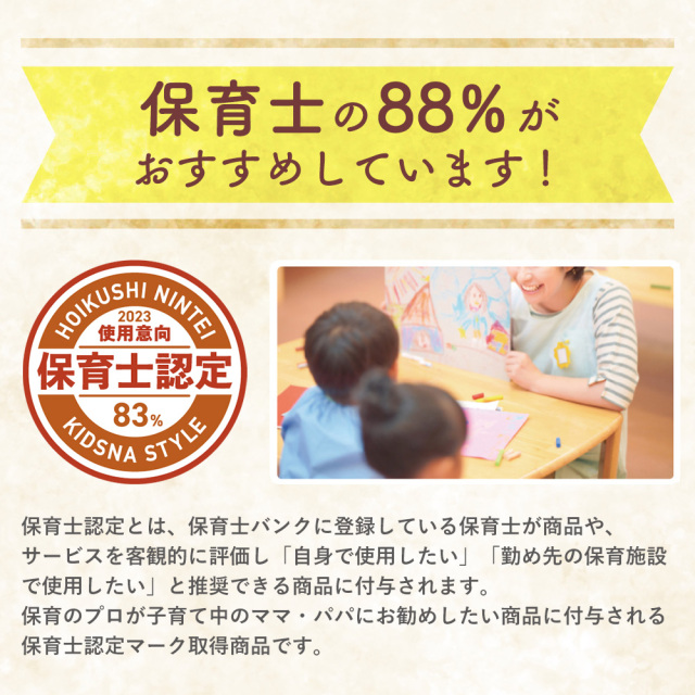 保育のプロが子育て中のママ・パパにお勧めしたい商品に付与される保育士認定マーク取得商品です。 |
