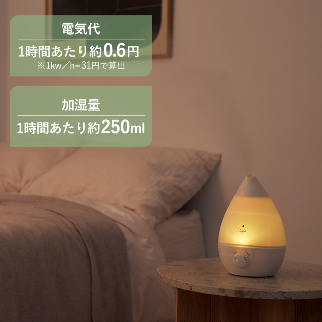 コンパクトでかわいいけれど、お部屋をしっかりと加湿して潤します。