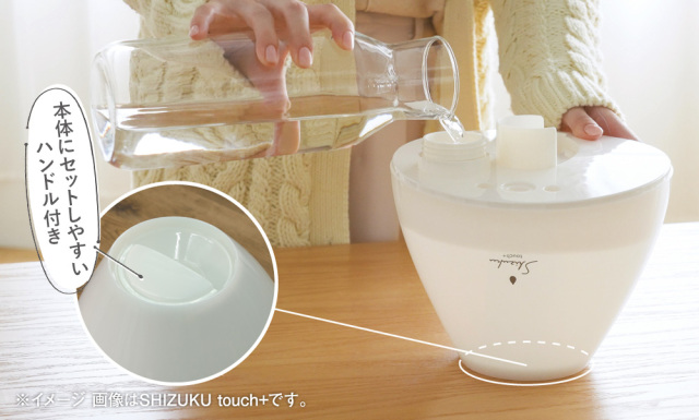 小さいけれど約250ml/hの加湿量でお部屋をしっかり潤し、抗菌カートリッジ付属で衛生的。