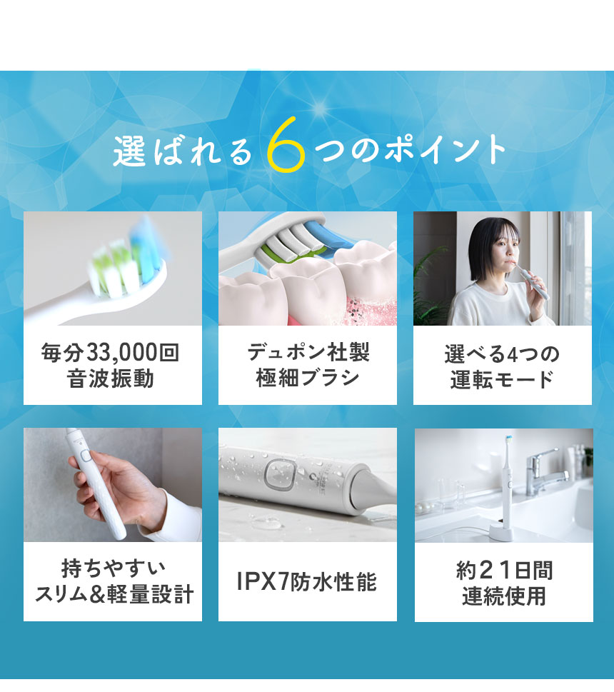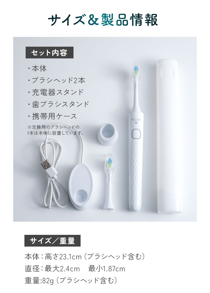 本体、ブラシヘッド2本(レギュラー)、充電器、歯ブラシ立て、携帯ケース |