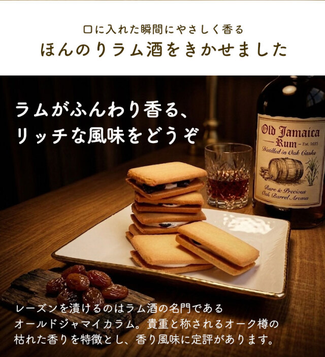 小麦粉(国内製造)、マーガリン、レーズン洋酒漬(レーズン、砂糖、洋酒)、砂糖、卵、粉糖(砂糖、コーンスターチ)、ショートニング、加糖れん乳、全粉乳、洋酒、食塩、ミルク風味加工品(乳糖、乳等を主要原料とする食品)/酒精、膨張剤、香料、ph調整剤、着色料(カロチン)、(一部に小麦・卵・乳成分・オレンジ・大豆・りんごを含む)