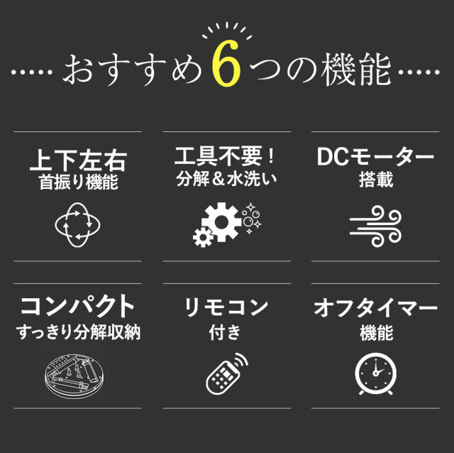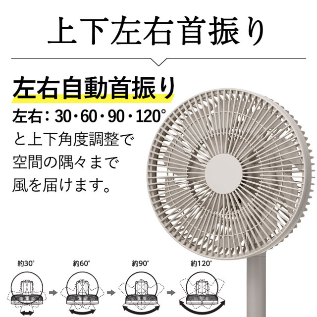 ・30、60、90、120°に設定できる左右自動首振り機能を備え、ボタン操作でスムーズに切替が可能です。