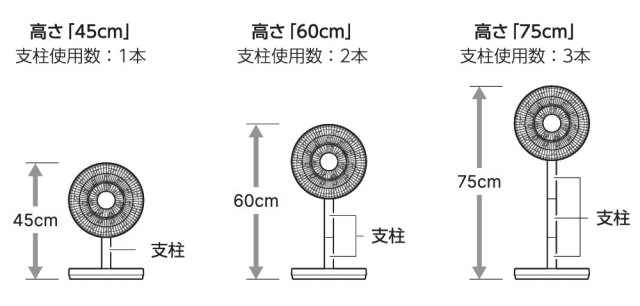 ・オフシーズンの収納にも配慮した分解構造を採用。支柱は3分割にしてリモコンと共に台座底面へすっきり収納できます。